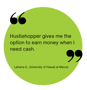 Hustlehopper is a marketplace offering accessible, flexible job solutions for the modern-day student or job seeker. Leveraging modern technology, we offer a seamless, personalized platform where users can find and offer work that meets their needs and earn while they learn, gain valuable experience, and support their living expenses, athletic endeavors, academic focal points and improve their lifestyle.